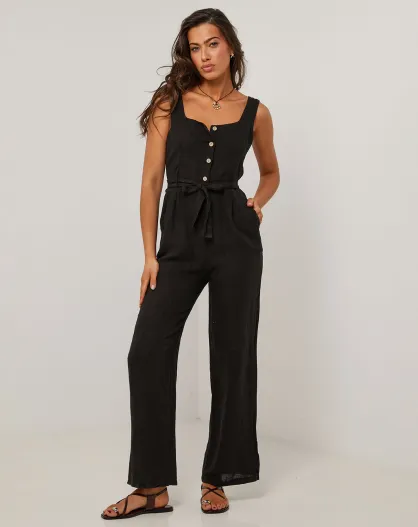 Carla zwarte jumpsuit van 100% linnen