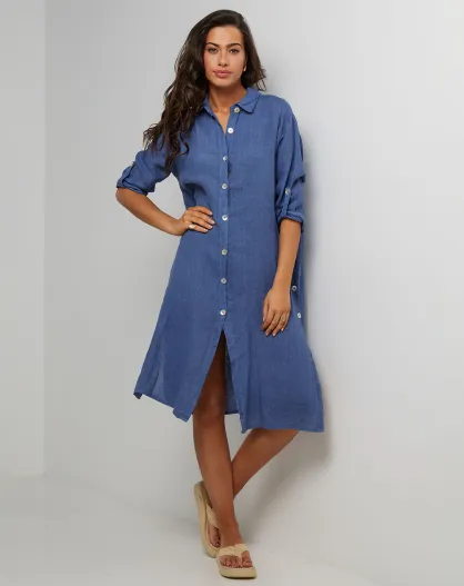 Rozeblauwe jeanshemdjurk van 100% linnen