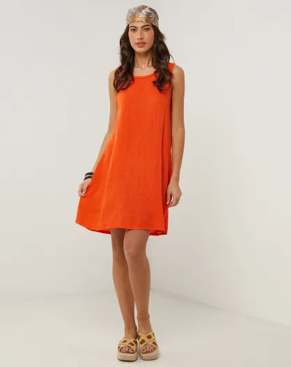 Oranje Clementine jurk van 100% linnen