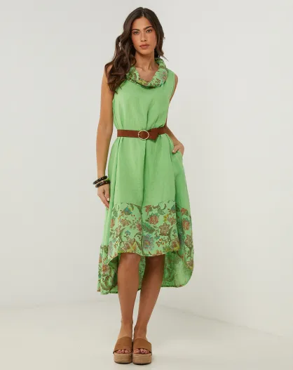 Anais groene jurk van 100% linnen