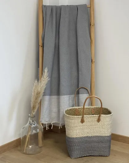 Mikanda traditionele honingraat fouta grijs - 100x200 cm