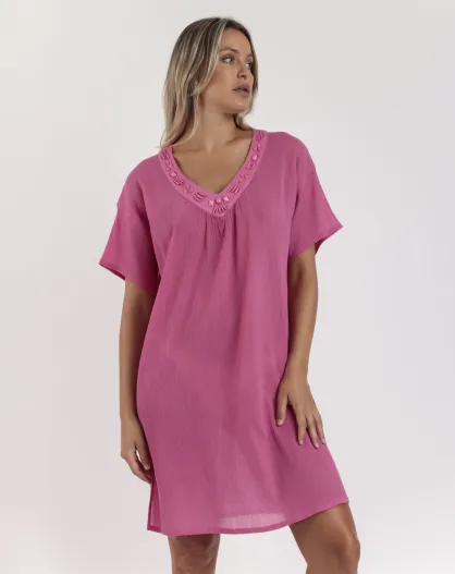 Stone fuchsia jurk met korte mouwen