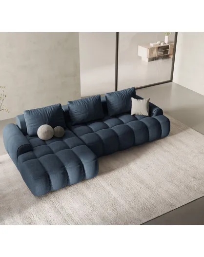 Linz 3-zits donkerblauwe converteerbare linkerhoekbank met kofferbak - 275x142x84 cm