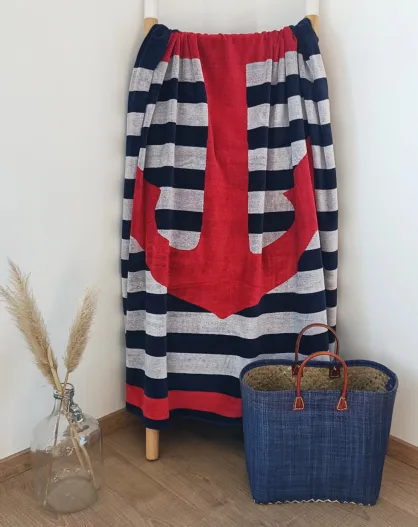 XL blauw Jacquard Conigli strandlaken van fluweel met spons - 140x180 cm