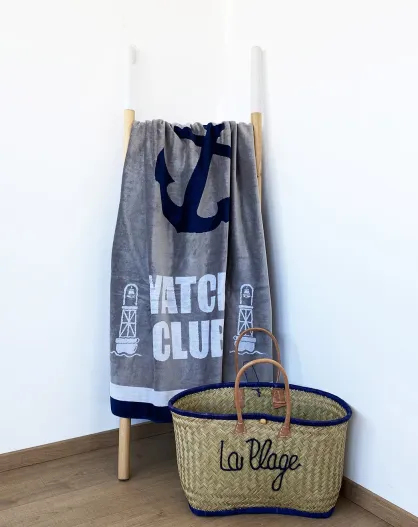 Yacht club grijs jacquard fluwelen badstof strandlaken - 95x170 cm
