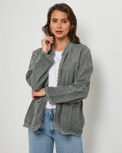 Manon kaki jas van linnen en katoen