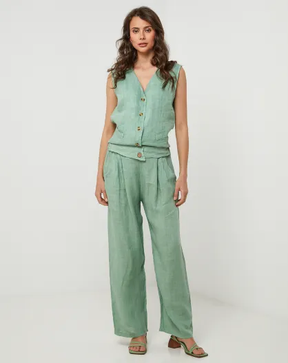Victoire groene broek van 100% linnen