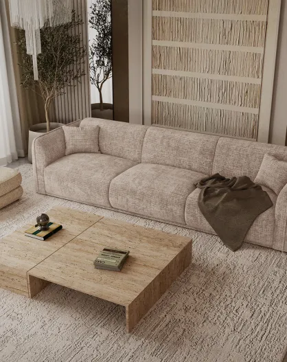 Oslo 4-zitsbank beige fluweel met reliëf - 235x90x72,5 cm