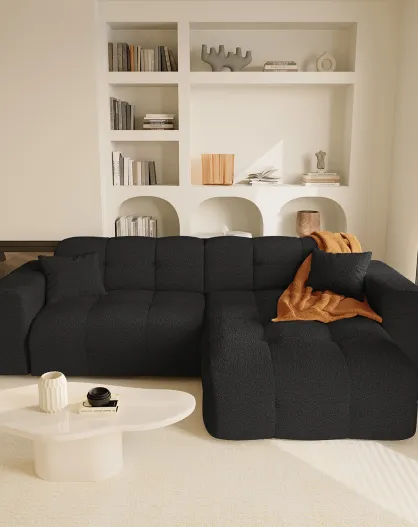 Rechthoekige bank Matis zwarte boucléstof - 230x155x85 cm