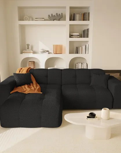 Hoekbank links Matis zwarte bouclé stof - 230x155x85 cm