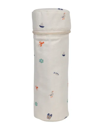 Beige/blauwe geïsoleerde flessentas - D.10x31 cm