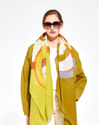 Sjaal met pictogrammen in citrien 100 x 190 cm