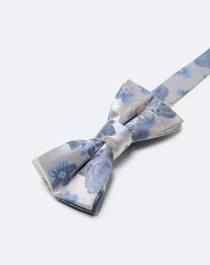 100% zijden kobaltblauwe vlinderdas met bloemen