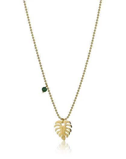 Katherine halsketting in geelverguld staal en goud/groen synthetisch malachiet