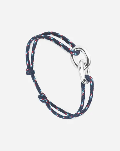 Dinant Union 22mm verzilverde armband marineblauw gespikkeld wit rood hemelsblauw