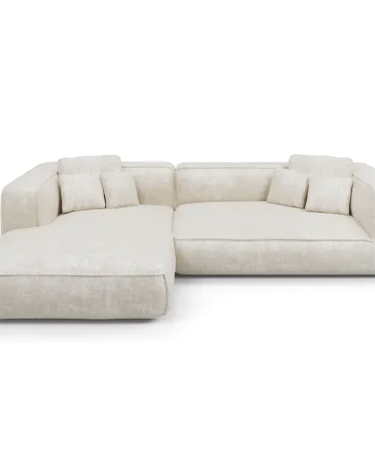 Hoekbank links 255cm ROMY Creme geweven fluweel - 255x160x70