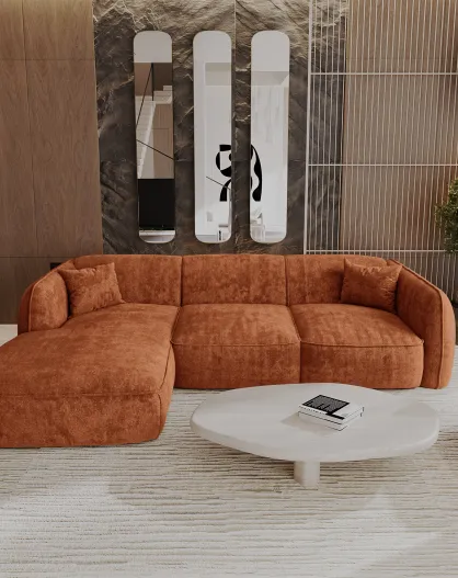 LIAM linkerhoekbank Terracotta geweven fluweel - 272x90x74