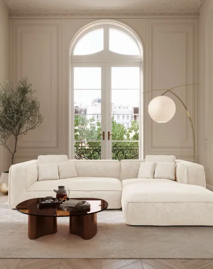 Rechthoekige bank 255cm ROMY Creme geweven fluweel - 255x160x70