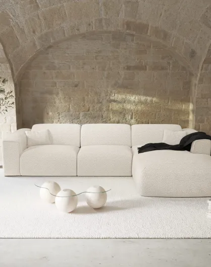 Omvormbare rechterhoekbank express Dunlopillo matras 140 cm NOVA Boucle stof Cream - 299x165x73