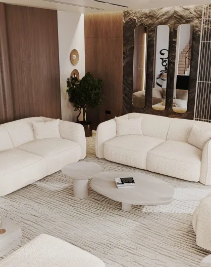 LIAM 4-zitsbank Creme Boucle Fabric - 230x90x74