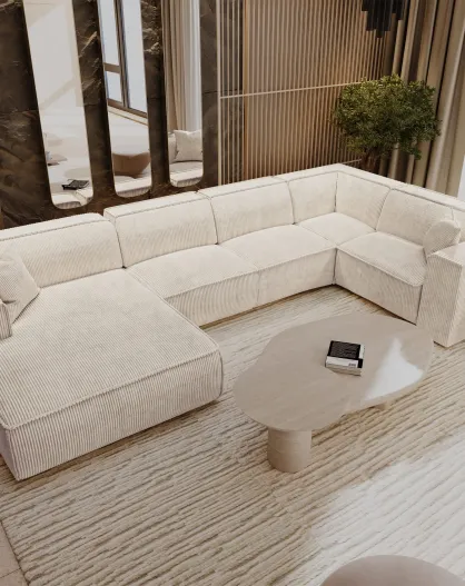 XXL panoramabank met 2 sierkussens RUBEN Cream corduroy - 391x173x78