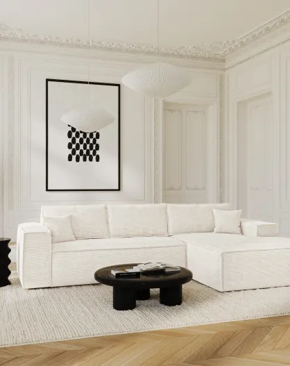 Omvormbare rechterhoekbank express matras 140 cm RUBY crème corduroy - 320x165x80