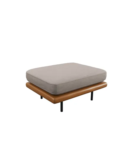 Poef PIONI Beige taupe geweven stof met cognac lederen basis - 90x70x46
