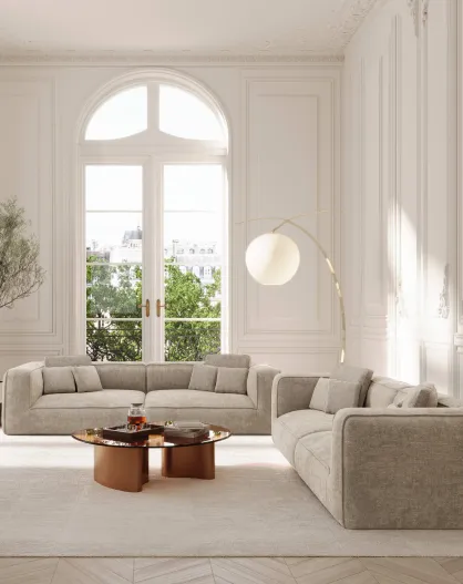 ROMY 3-zitsbank in beige geweven fluweel - 250x105x70