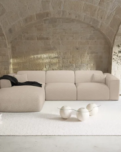 NOVA Linkerhoekbank Beige Bouclette stof - 280x165x73