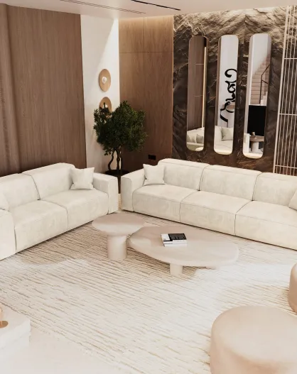 5-zitsbank met 2 sierkussens RUBEN Velours Cream - 323x95x78