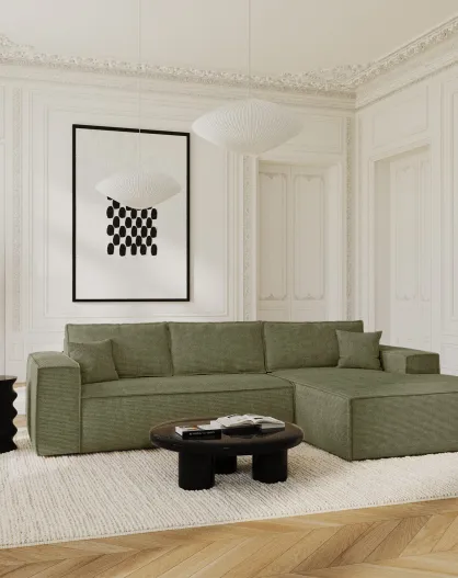 Omvormbare rechterhoekbank express matras 140cm RUBY vintage groen corduroy - 320x165x80