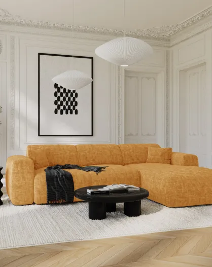LIVA converteerbare hoekbank rechts Mosterdgeel getextureerd fluweel - 283x180x73