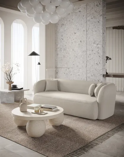 EMY 3-zitsbank Creme geweven stof - 205x88x77