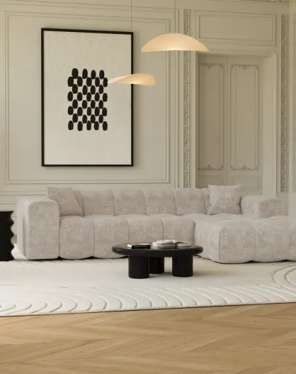 COVA rechthoekige bank crèmekleurig fluweel met reliëf - 290x94x69,5