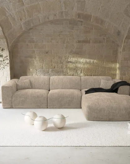 Omvormbare rechterhoekbank express Dunlopillo matras 140 cm NOVA beige getextureerd fluweel - 299x165x73