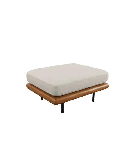 PIONI voetenbank Crèmekleurige krullende stof met cognac leren onderstel - 90x70x46
