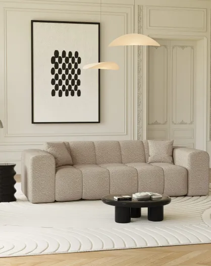 COVA 4-zitsbank Taupe Boucle Stof - 247x94x69,5