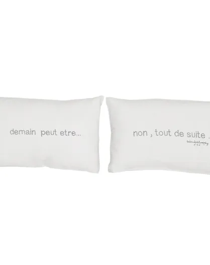 Paar gezeefdrukte kussens in grijs linnen 25x40cm