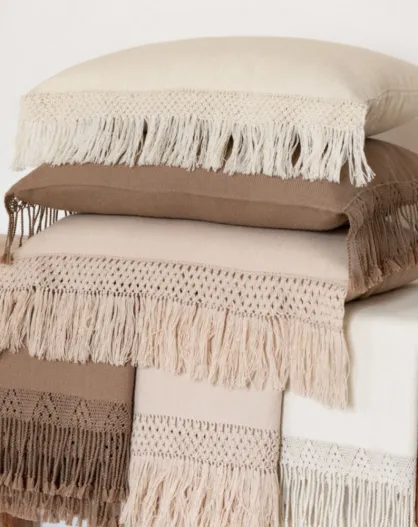Plaid van katoen en wol met roze macramédetails 90x200cm
