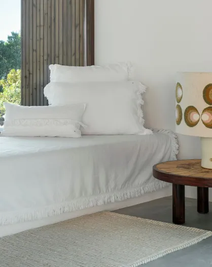 Plaid van linnen en katoen met witte franjes 150x180cm