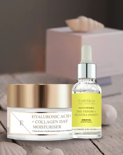 Crèmeset met hyaluronzuur en collageen + serumset met bijengif en honingolie - 2 stuks
