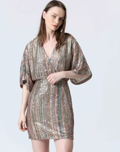 CLAIINE oranje/gouden jurk
