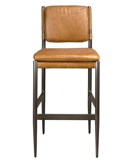 Barstoel van bruin leer/donker staal - 12x49x55 cm