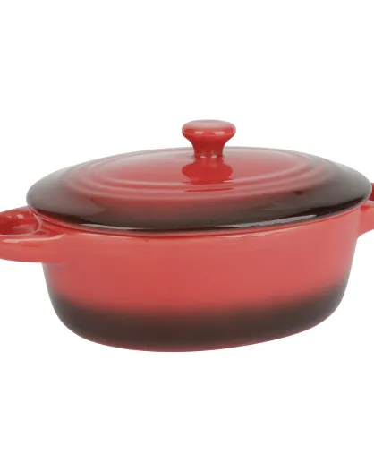 Kleine ovale rode tweekleurige ovenschotel van steengoed - 12,5x9,5x4,5 cm