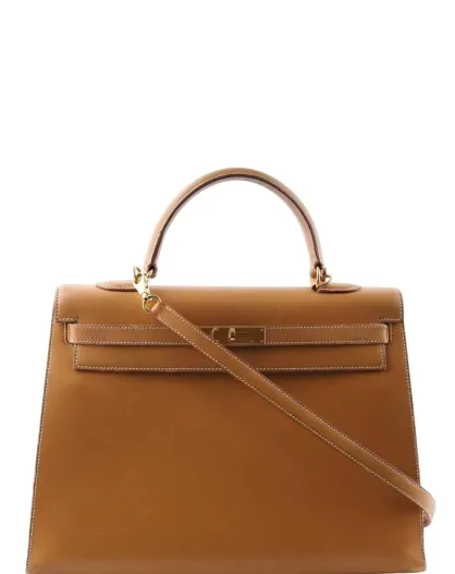 Camelkleurige leren handtassen - 35x14x26 cm - Goede conditie