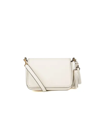 Thea leren schoudertas met klep gebroken wit - 24x15x9 cm