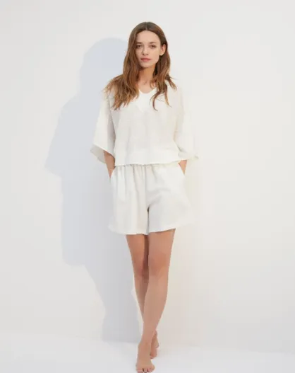 BJM-1724 crèmekleurige pyjamaset met borduursel