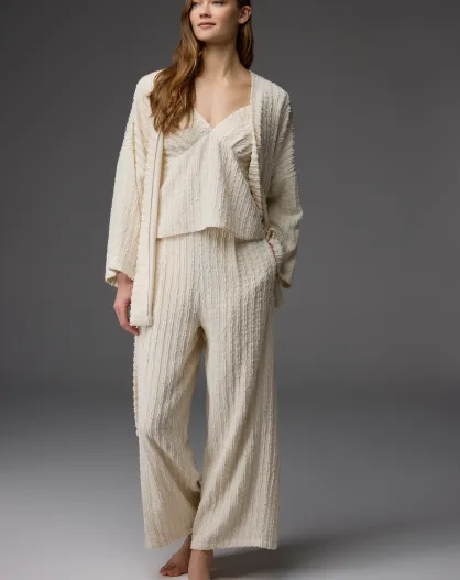 BM-1814 crèmekleurige pyjamaset met bijpassend patroon, 3-delige pyjamaset