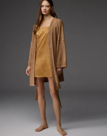 BM-1807 Mosterdkleurige jacquardbadjas en nachtjapon