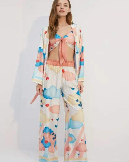 BJM-1706 Veelkleurige satijnen pyjamaset, 3-delig, BJM-1706